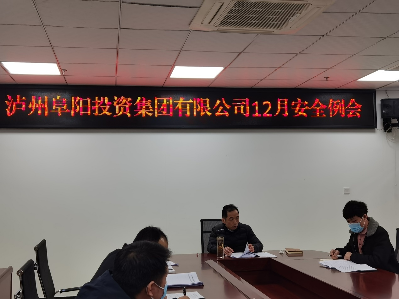 2021 年 12月22日,瀘州阜陽投資集團有限公司召開了12月份安全生產(chǎn)例會,胡天華副總經(jīng)理帶領(lǐng)大家學(xué)習(xí)了近期安全生產(chǎn)會議精神,并觀看了火災(zāi)案例警示教育片。會上胡總要求各級公司做好平時安全防范工作,把安全生產(chǎn)工作落實到最小單元,落實到操作一線,真正做到知責(zé)履責(zé)、擔(dān)責(zé)盡責(zé)。
