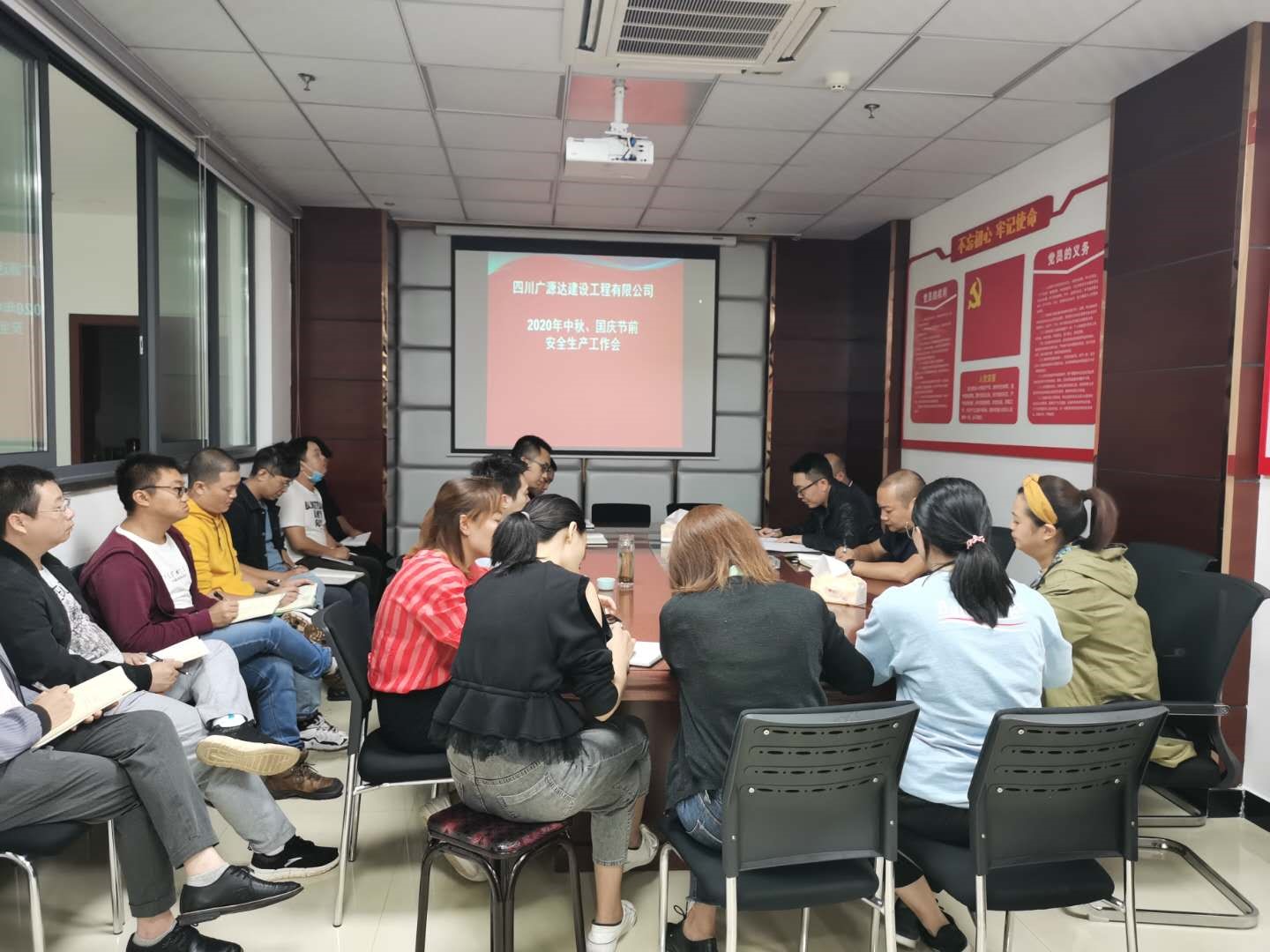 2020年9月25日,廣源達(dá)公司董事長譙棣升主持召開中秋國慶節(jié)前安全生產(chǎn)工作會暨《關(guān)于迅速集中整改國務(wù)院安委會考核巡查四川省2019年度安全生產(chǎn)和消防工作發(fā)現(xiàn)問題工作方案》的整改會,公司全體人員及各在建項(xiàng)目項(xiàng)目經(jīng)理和安全負(fù)責(zé)人參會。
