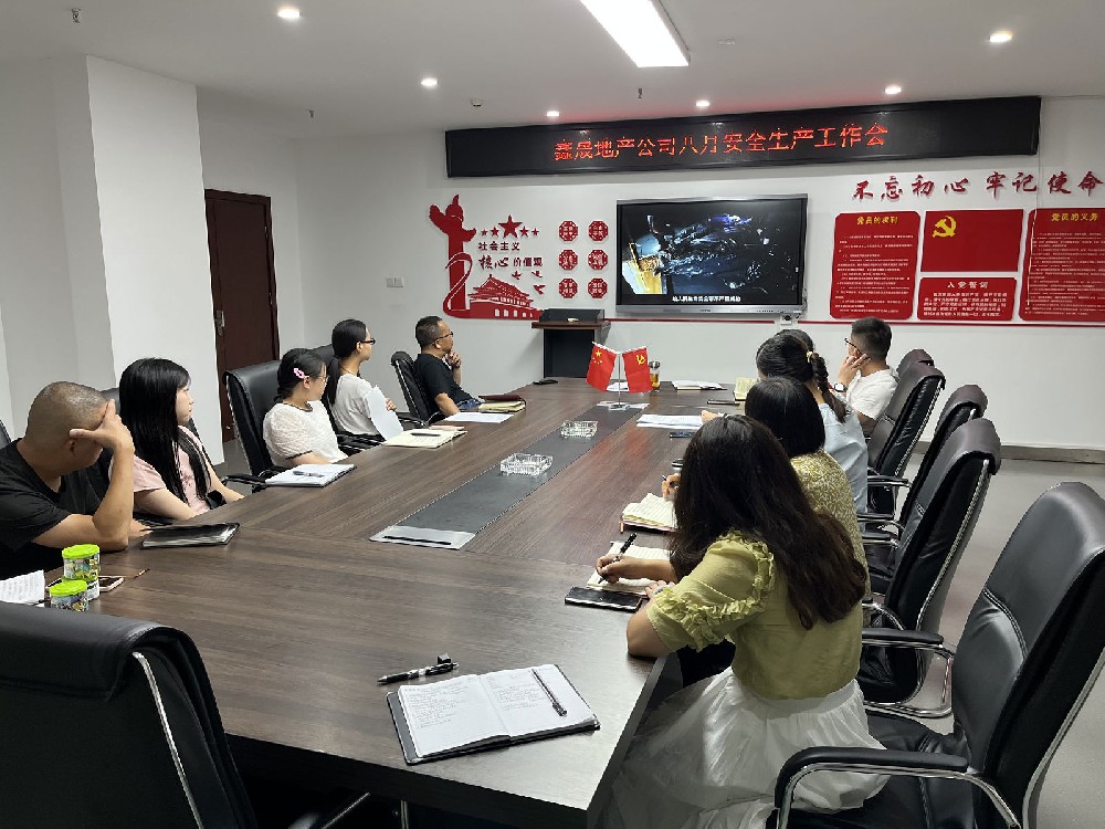 2022年 8 月 24 日,瀘州鑫晟房地產開發(fā)有限公司組織召開八月安全生產工作會,會議由董事長任東財主持,公司全體員工參加。