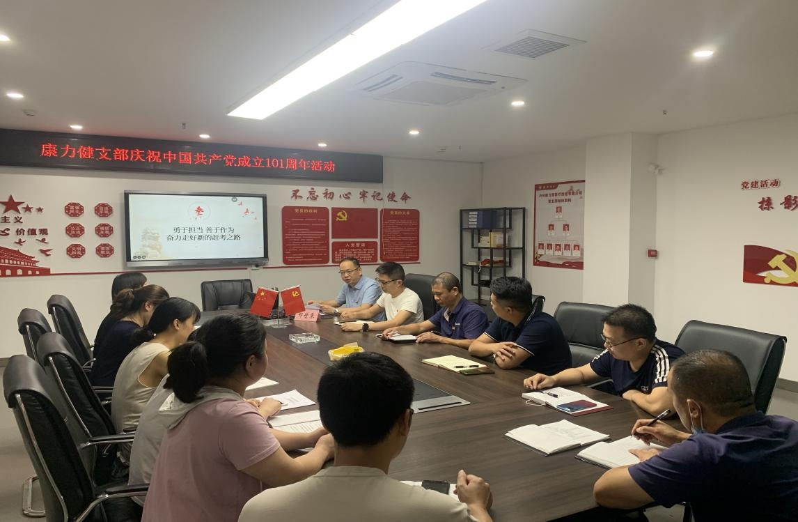 為慶祝中國共產(chǎn)黨建黨 101 周年, 7 月 1 日, 康力健黨支部開展 “七一” 主題黨日活動, 通過唱紅歌、 重溫入黨誓詞、 支部書記講黨 課等多種形式, 教育引導黨員干部不忘初心, 知行合一, 以實際行動 迎接黨的二十大勝利召開。
