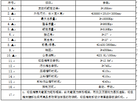 采購(gòu)護(hù)欄清洗車(chē)1臺(tái)、清洗(灑水)車(chē)2臺(tái)、壓縮式垃圾車(chē)1臺(tái)、車(chē)廂可卸式垃圾車(chē)5臺(tái)、揭蓋垃圾車(chē)7臺(tái)(包含車(chē)輛上牌,車(chē)輛首次強(qiáng)制保險(xiǎn)及商業(yè)險(xiǎn),其中商業(yè)險(xiǎn)不低于150萬(wàn)元)。