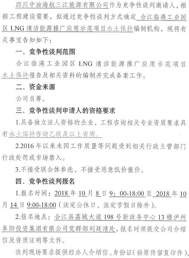合江臨港工業(yè)園區(qū)LNG清潔能源推廣應(yīng)用示范項(xiàng)目水土保持報告單位競爭性談判公告.docx
