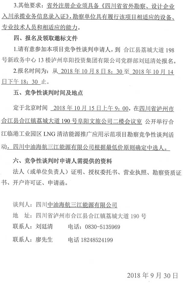 競(jìng)爭(zhēng)性談判公告:合江臨港工業(yè)園區(qū)LNG清潔能源推廣應(yīng)用示范項(xiàng)目勘察競(jìng)爭(zhēng)性談判公告