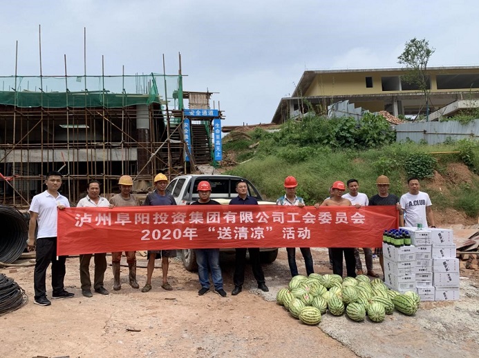 近日,合江持續(xù)高溫,為保障一線人員的身體健康,確保各項生產(chǎn)工作安全有序開展,8月11日,集團公司黨委委員、工會主席袁健,帶領(lǐng)集團黨群紀檢工作部、綜合部先后深入鑫晟學府、殯儀中心、龍掛山景區(qū)等十多個項目建設(shè)現(xiàn)場,看望慰問奮戰(zhàn)在一線的工作者,為他們送去清涼物資和關(guān)心關(guān)愛。