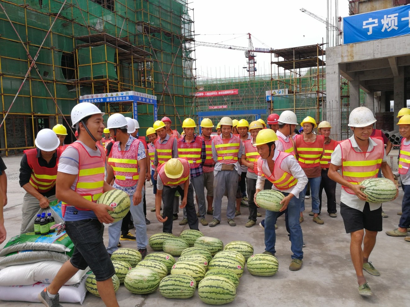 2019年8月5日下午,縣總工會(huì)會(huì)同城投公司、鑫晟公司、廣源達(dá)公司到鑫晟學(xué)府項(xiàng)目開(kāi)展送“清涼”活動(dòng)??h工會(huì)領(lǐng)導(dǎo)一行對(duì)建筑工人表示慰問(wèn),并為他們送上藿香正氣液、風(fēng)油精、西瓜、綠豆、白糖等降暑防暑物品。