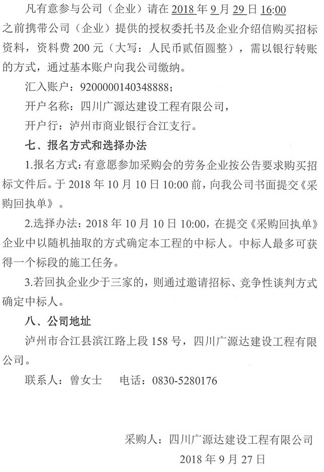 采購(gòu)公告:四川廣源達(dá)建設(shè)工程有限公司阜陽(yáng)文化產(chǎn)業(yè)綜合體(一期)裝修附屬工程勞務(wù)分包企業(yè)采購(gòu)公告(第二次)