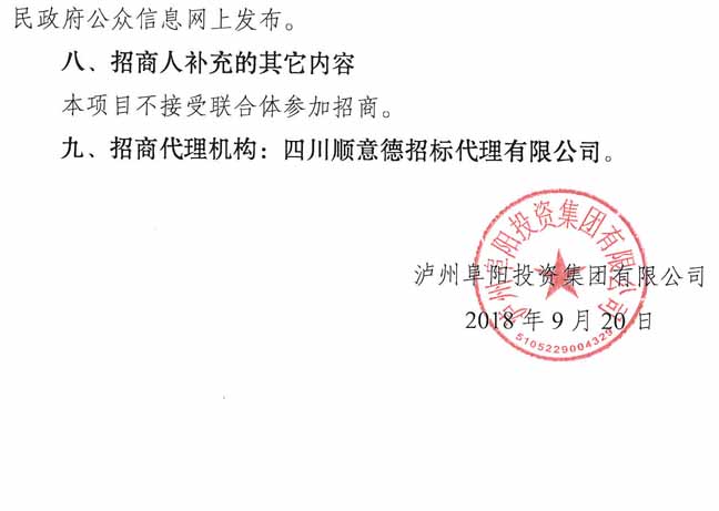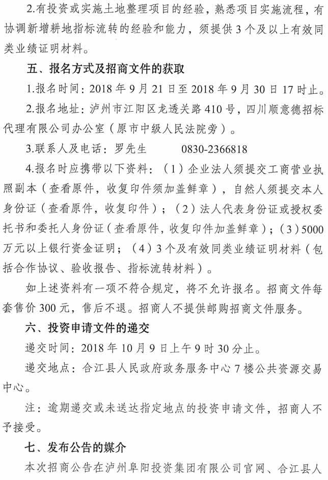 招商公告:瀘州阜陽投資集團(tuán)有限公司耕地占補(bǔ)平衡項(xiàng)目招商公告