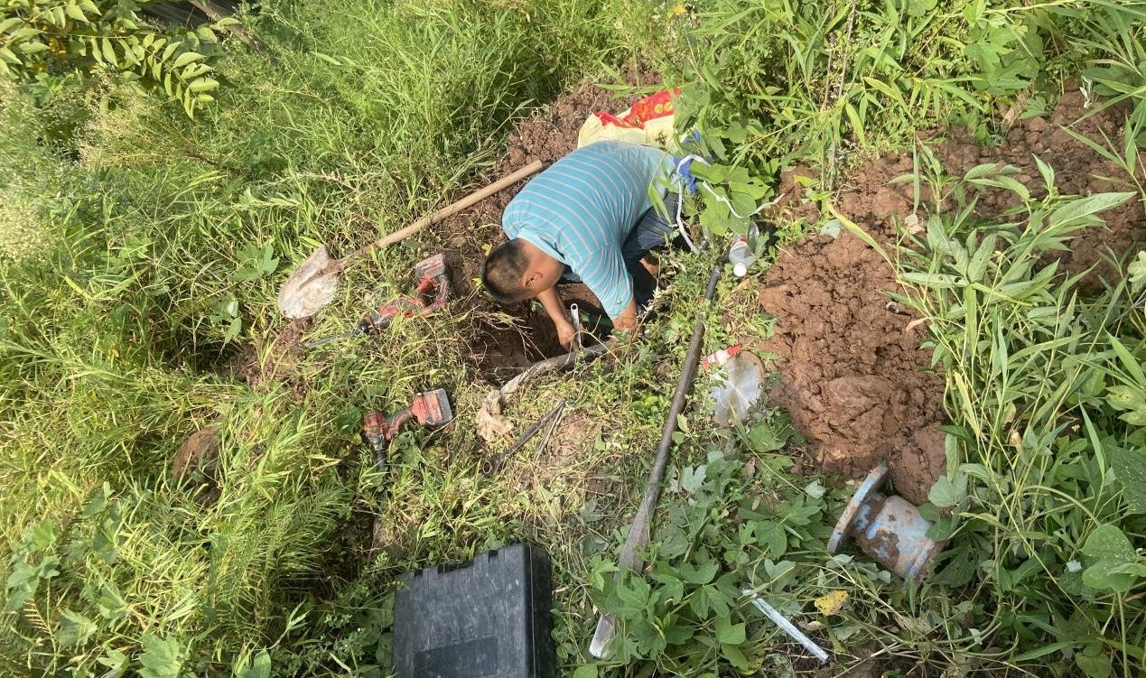 8 月 19 日上午 7 點(diǎn) 40 分鳳鳴片區(qū)負(fù)責(zé)人陳裕寧帶隊(duì)查看陽(yáng) 棚垇私拉亂接現(xiàn)場(chǎng),預(yù)防后段用水戶無(wú)法正常供水