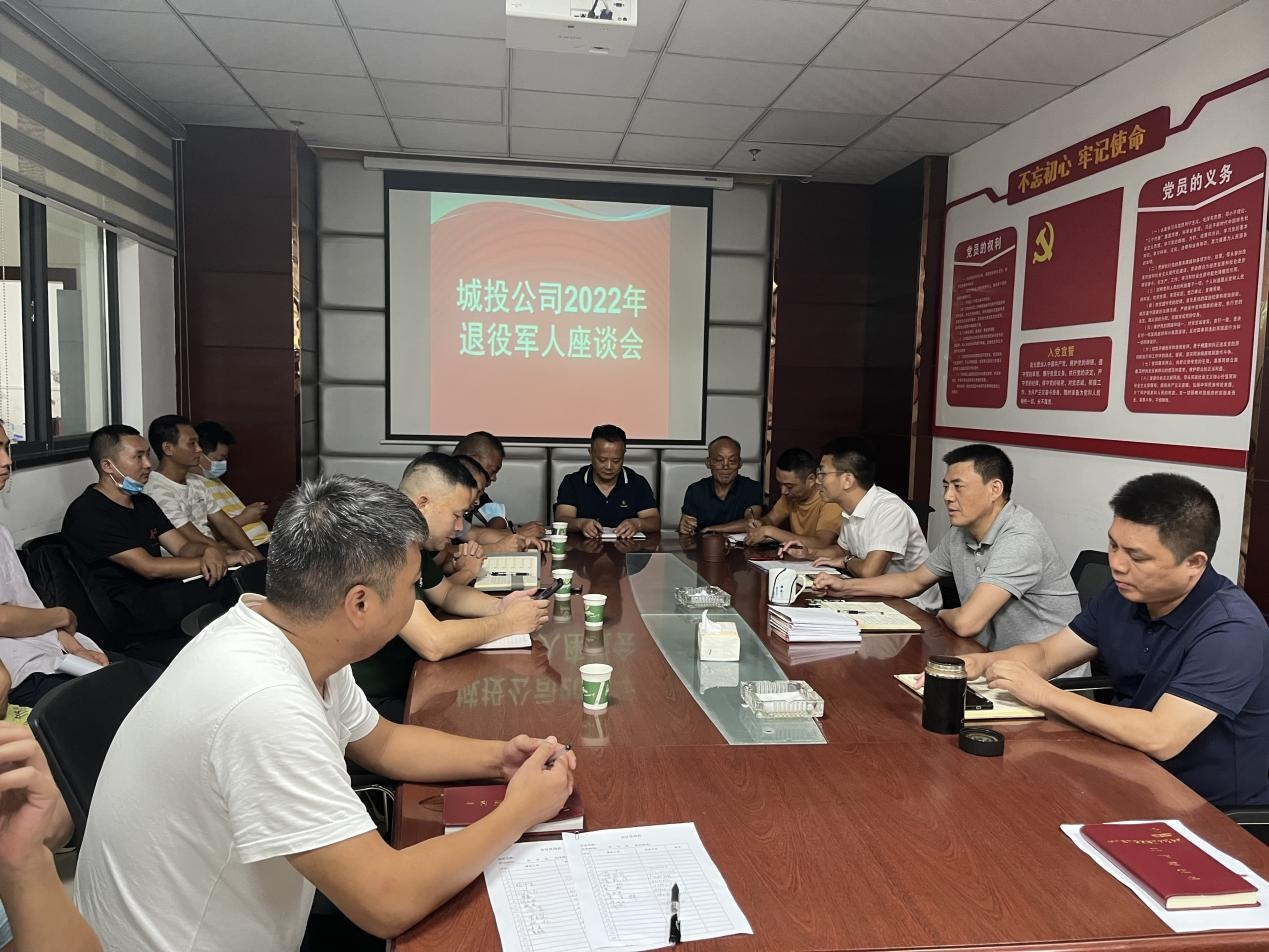 為慶祝中國人民解放軍建軍 95 周年, 2022 年 8 月 1 日 下午, 城投公司董事長兼總經(jīng)理鞠志良、 副總經(jīng)理陳云峰組 織召開退役軍人座談會(huì)。