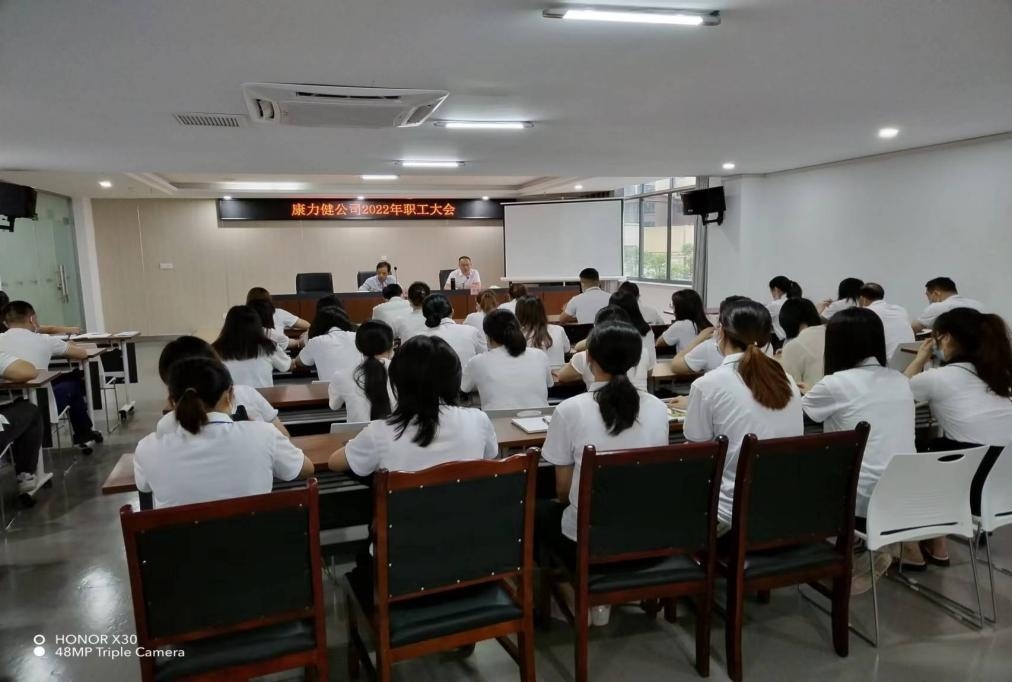 2022 年 6 月 27 日上午,瀘州康力健醫(yī)療投資有限公司 在 公 司 大 會 議 室 舉 行 2022 年 職 工 大 會 。 公 司 董 事 長 胡 天 華 、 總經(jīng)理鄭世來出席了大會, 并在大會上發(fā)表重要講話。 本次 大會分為上半年工作總結(jié)、 下半年工作計劃及安全生產(chǎn)會議 三個部分, 旨在總結(jié)公司上半年的發(fā)展情況, 完善下半年的 發(fā)展計劃及 “ 對標(biāo)找差、提能增效 ” 活動開展情況,鄭世來總 經(jīng)理提出 : 一是要理清業(yè)務(wù)工作思路,對目標(biāo)任務(wù)高標(biāo)準(zhǔn)嚴(yán) 要求的貫徹執(zhí)行;二是要強化落實 “ 兩個責(zé)任 ” ,抓好黨的建 設(shè)和企業(yè)管理。 將組織相關(guān)人員不定期對公司各崗位履職情 況進行檢查監(jiān)督, 發(fā)現(xiàn)問題, 立即指出督促整改到位, 建立 健全各項規(guī)章制度, 以制度管人, 推動公司各職能部門履職 盡責(zé), 提升公司盈利能力和盈利水平, 并對廉潔從業(yè)及安全 生產(chǎn)管理制度進行了的宣講。