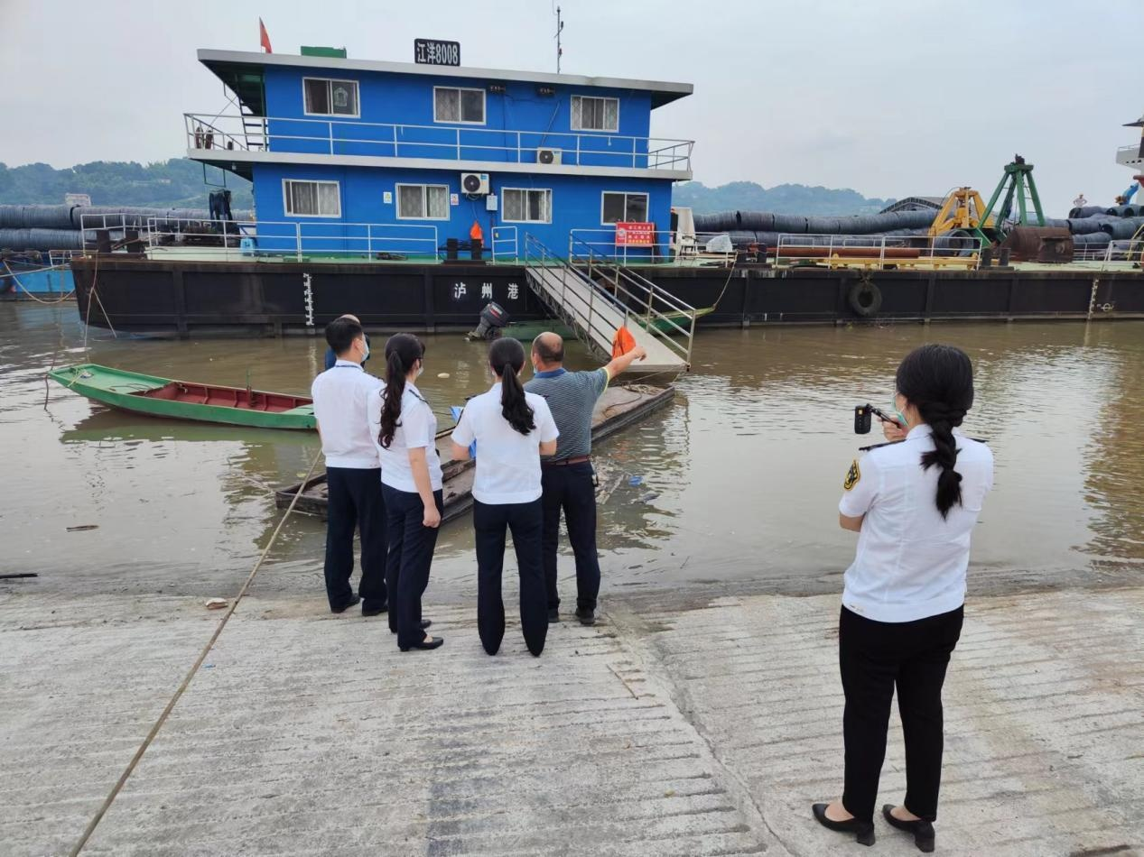 2022 年 6 月 10 日 , 瀘 州 市 交 通 運(yùn) 輸 綜 合 行 政 執(zhí) 法 支 隊(duì) 六大隊(duì)到國(guó)瑞港埠民用碼頭檢查安全環(huán)保工作。