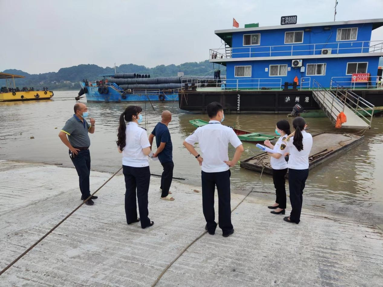 2022 年 6 月 10 日 , 瀘 州 市 交 通 運(yùn) 輸 綜 合 行 政 執(zhí) 法 支 隊(duì) 六大隊(duì)到國(guó)瑞港埠民用碼頭檢查安全環(huán)保工作。