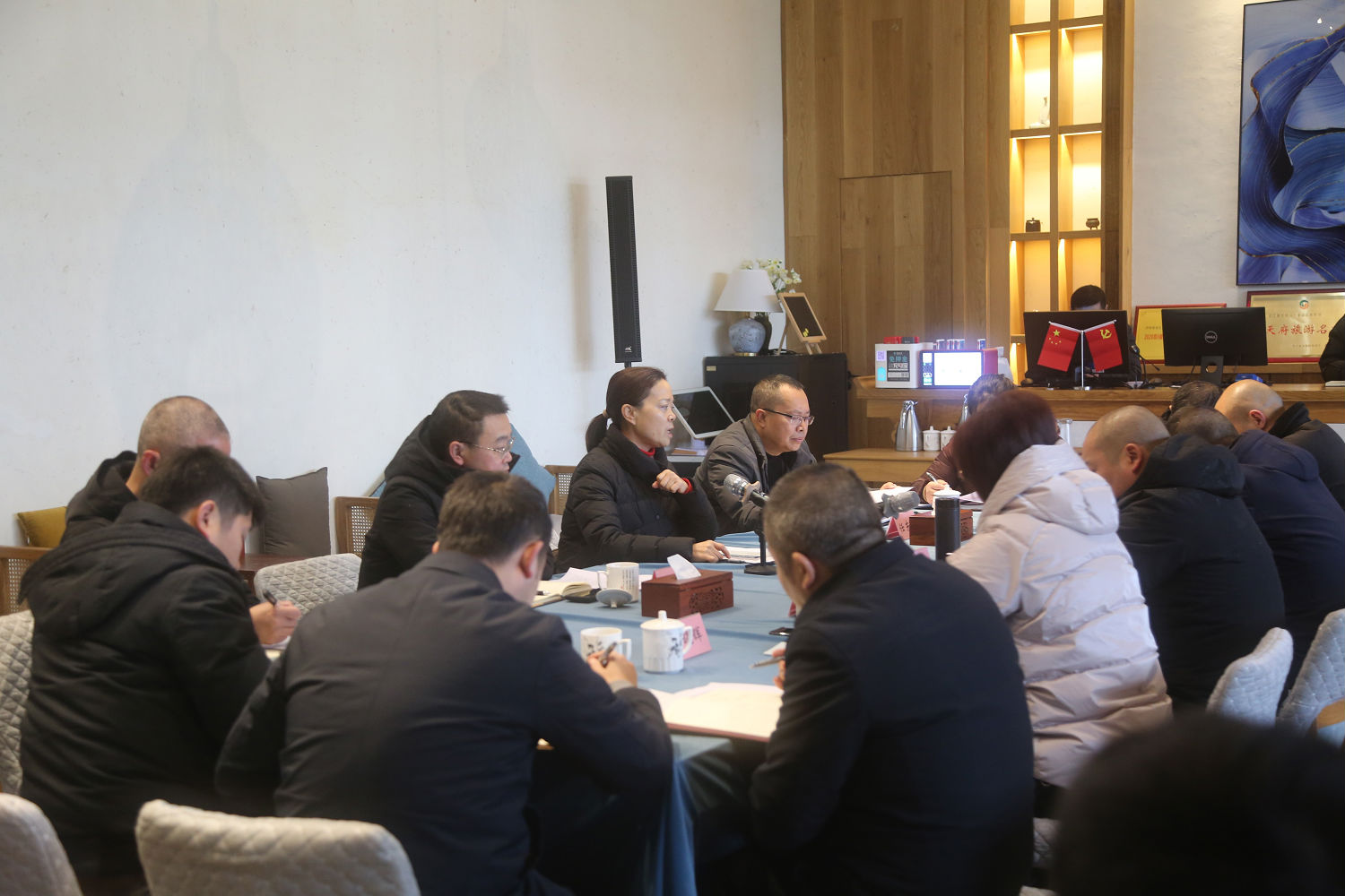 游啟君一行先到景區(qū)天街進(jìn)行現(xiàn)場勘查, 詳細(xì)了解了景 區(qū)工程進(jìn)度及預(yù)期運(yùn)營方向, 隨后在法王寺龍掛山景區(qū)—半 山云舍召開了座談會。 會上, 集團(tuán)公司領(lǐng)導(dǎo)對景區(qū)前期建設(shè)、 運(yùn)營工作給予了充分肯定, 并鼓勵文旅公司員工要繼續(xù)鉚足 干勁、整合力量來加快項(xiàng)目建設(shè),力爭早日全部投入運(yùn)營。